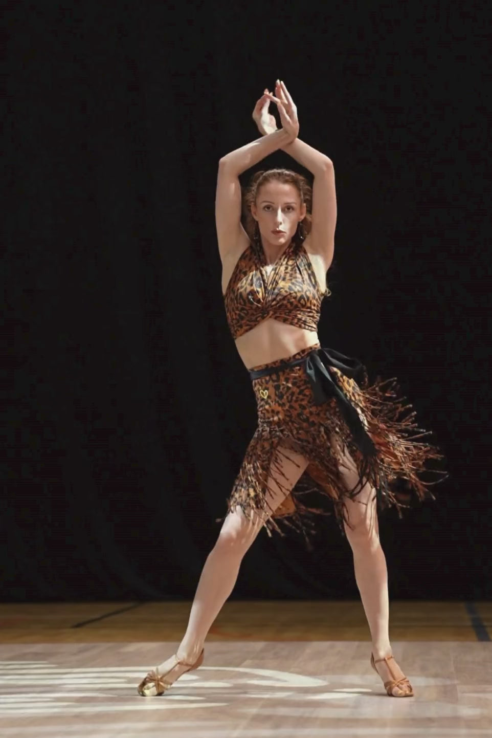 Latin skirt with panels and fabric fringes
